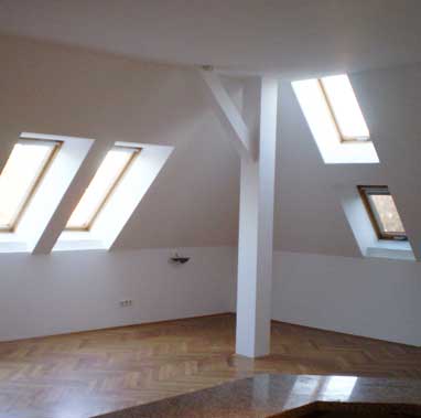 Gerade im urbanen Raum lassen sich aus oft ungenützten Dachgeschossen Oasen der Ruhe und Entspannung zaubern. Um den persönlichen Wohntraum über den Dächern der Stadt tatsächlich Realität werden zu lassen, bietet der trockene Innenausbau eine Vielzahl an gestalterischen Möglichkeiten. Sie planen ihre Wünsche, die prompte und technisch perfekte Realisierung übernehmen wir.