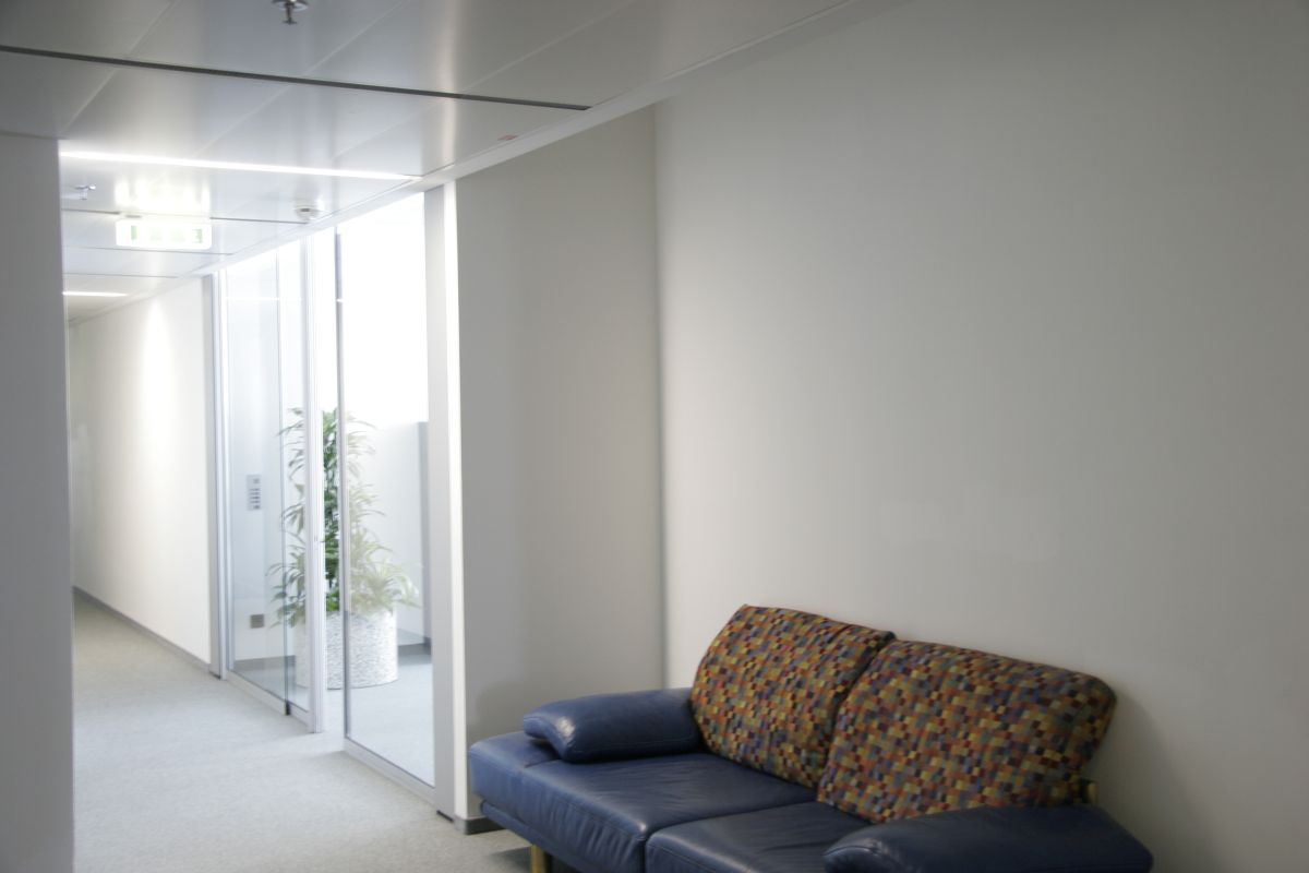 Innenausbau Klicka unterstützte viele Mieter dabei, die auf insgesamt 26 Geschosse verteilten Büro- und Lagerräume den jeweiligen Anforderungen anzupassen. Dafür wurden Zwischenwände zur Teilung von Büros errichtet und Zwischendecken eingezogen.